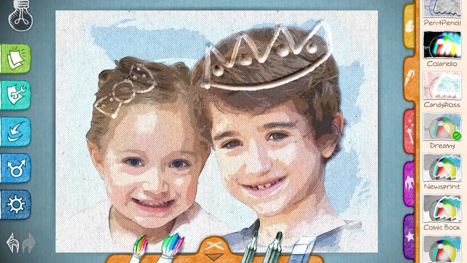 Con Paper Artist ¡Transforma tus fotos en obras de arte personalizadas! Sencillo y fácil de usar, ¡cualquiera puede convertirse en artista!. Elige entre mas de 40 estilos originales, modifica fotos ya tomadas o utiliza la cámara integrada, pinta con pincel para darle un toque de color y crear otros efectos mágicos y dale el toque final añadiéndole un marco o un borde. Es increíble como un preciado recuerdo se puede transformar en algo único y especial. ¡Comparte tu obra maestra en tus redes sociales favoritas, ¡todo el mundo se quedará alucinado!